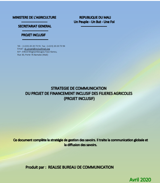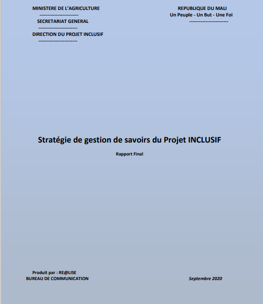 Ce manuel est élaboré pour servir de cadre de référence à la mise en œuvre efficace et efficiente des activités du projet INCLUSIF. La systématisation de la gestion des savoirs et de la communication dans la gestion des projets, favorise l’apprentissage et le partage d’expériences entre les projets en cours du portefeuille et/ou avec des projets d’autres partenaires.