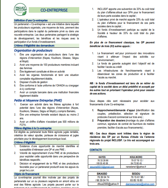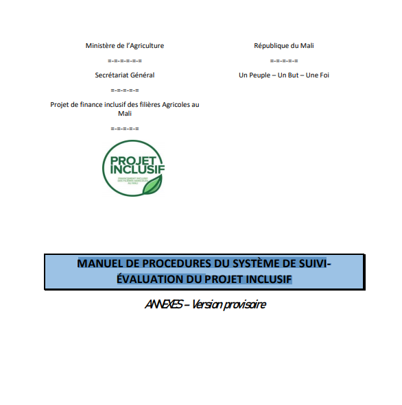 Ce manuel est élaboré pour servir de cadre de référence à la mise en œuvre efficace et efficiente des activités du projet INCLUSIF.