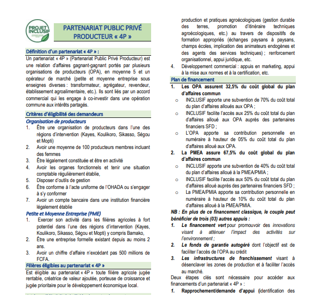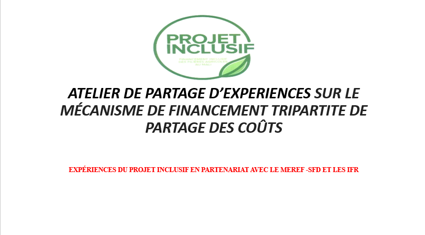 DU PROJET DE FINANCEMENT INCLUSIF DES FILIERES AGRICOLES